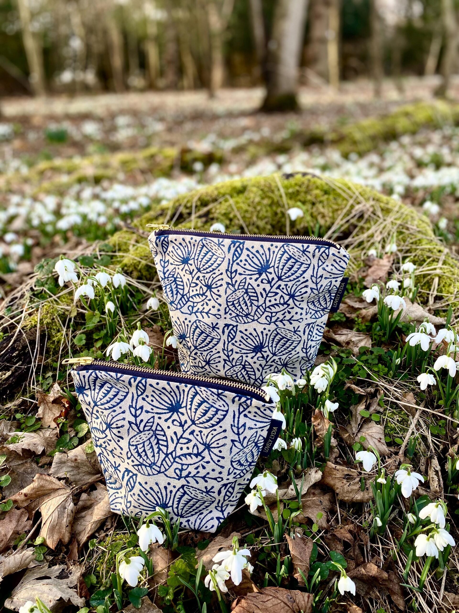 Lovely Lydia prints using water-based fabric paints on natural fabrics as far as possible including cotton and linen. We do not use any animal products such as wool or leather. All materials are sourced from suppliers within the UK and where possible, sourced from local Suffolk suppliers. Our packaging is plastic-free and fully recyclable.