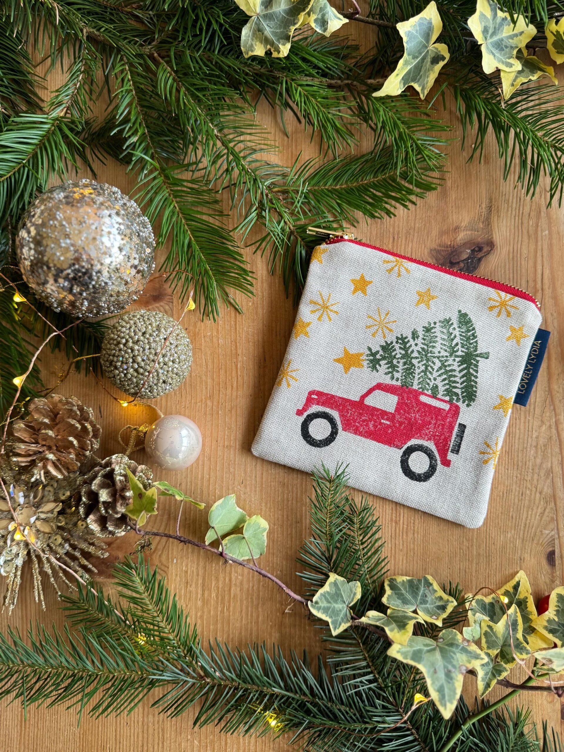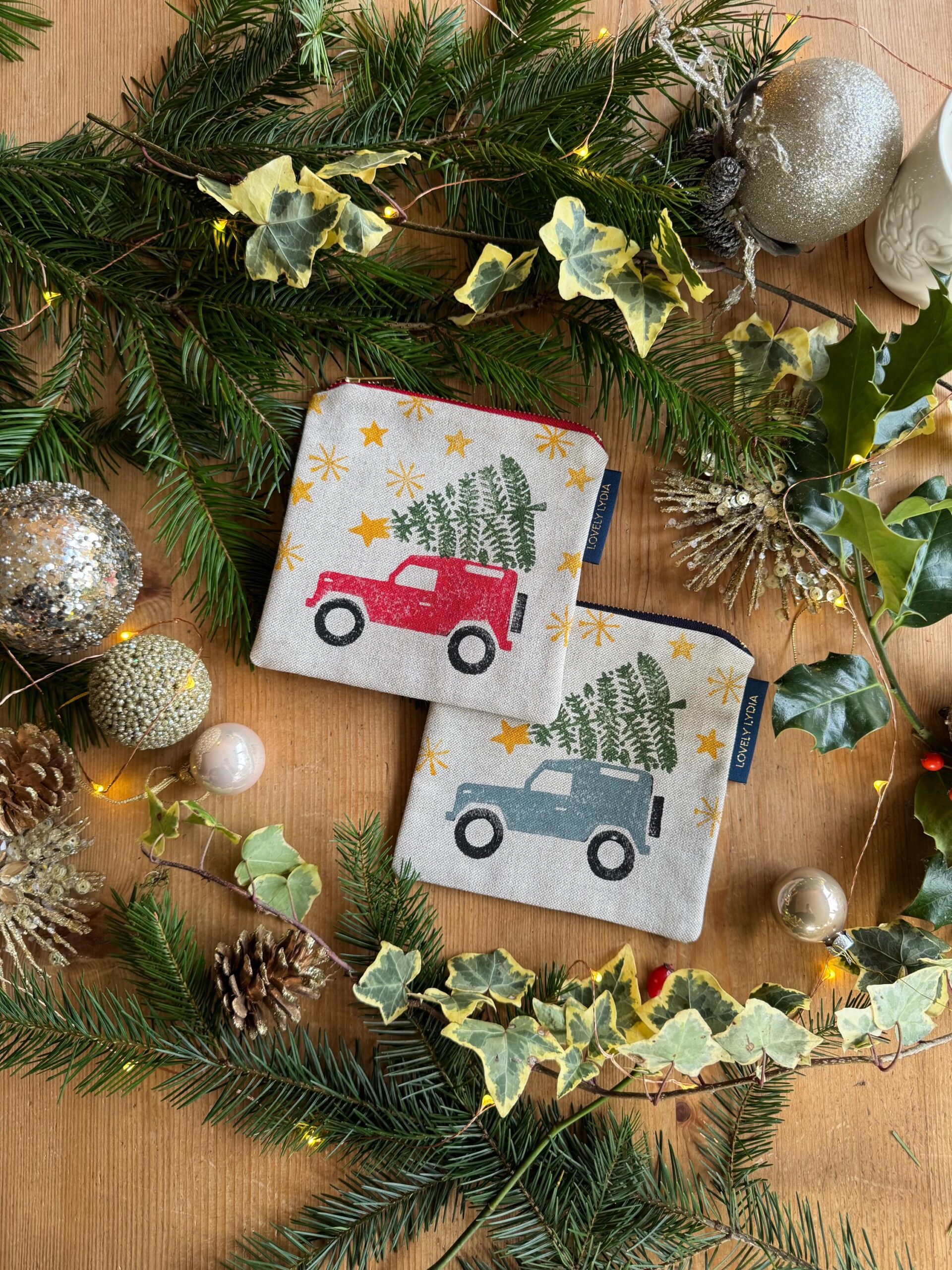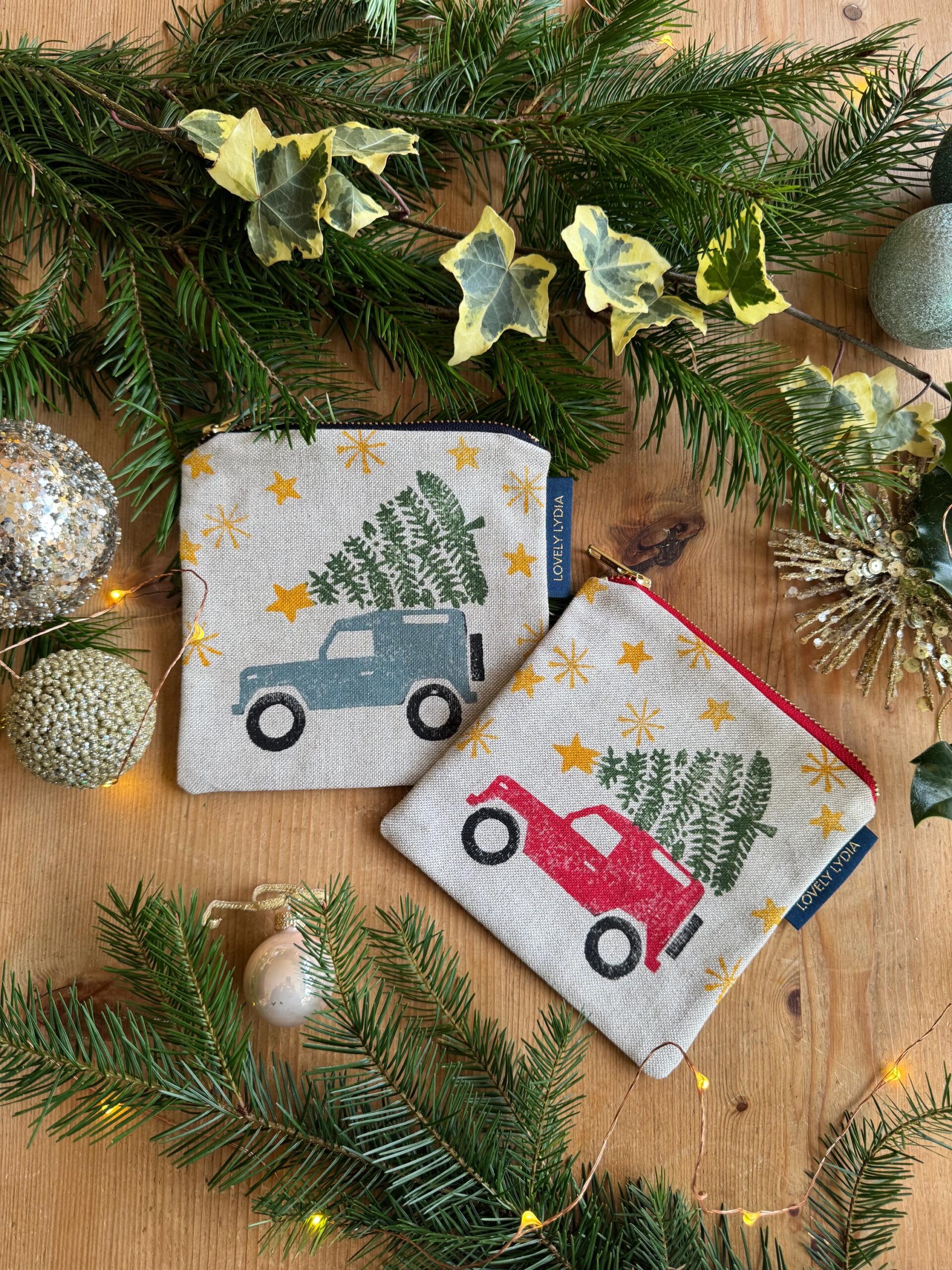 Mini Zippers are lined with a festive lining and have a brass zip- the zip colour matches the car colour int his version. So red car, red zip, blue car, blue zip etc