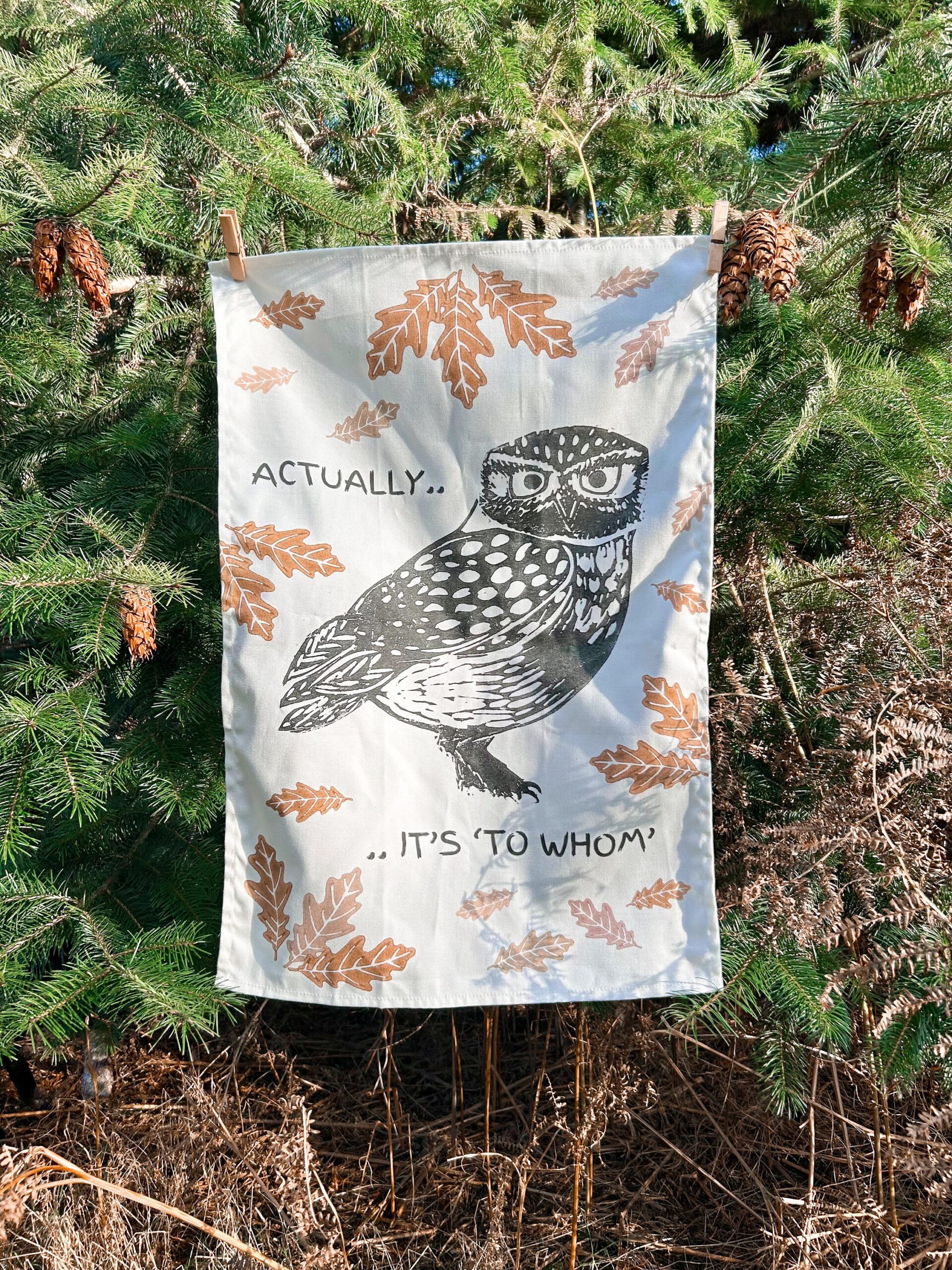 Little Owl “Actually it’s To Whom” Printed Cotton Tea Towel