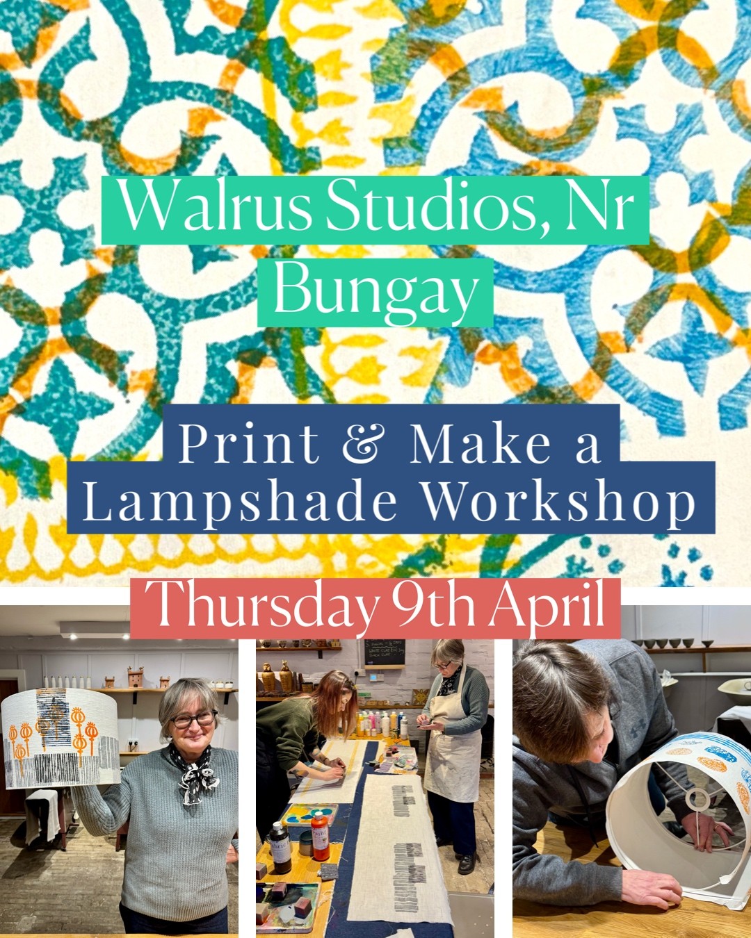 Print & Make a Lampshade Workshop – Thursday 9th April, Walrus Studios, Earsham Hall, Nr Bungay