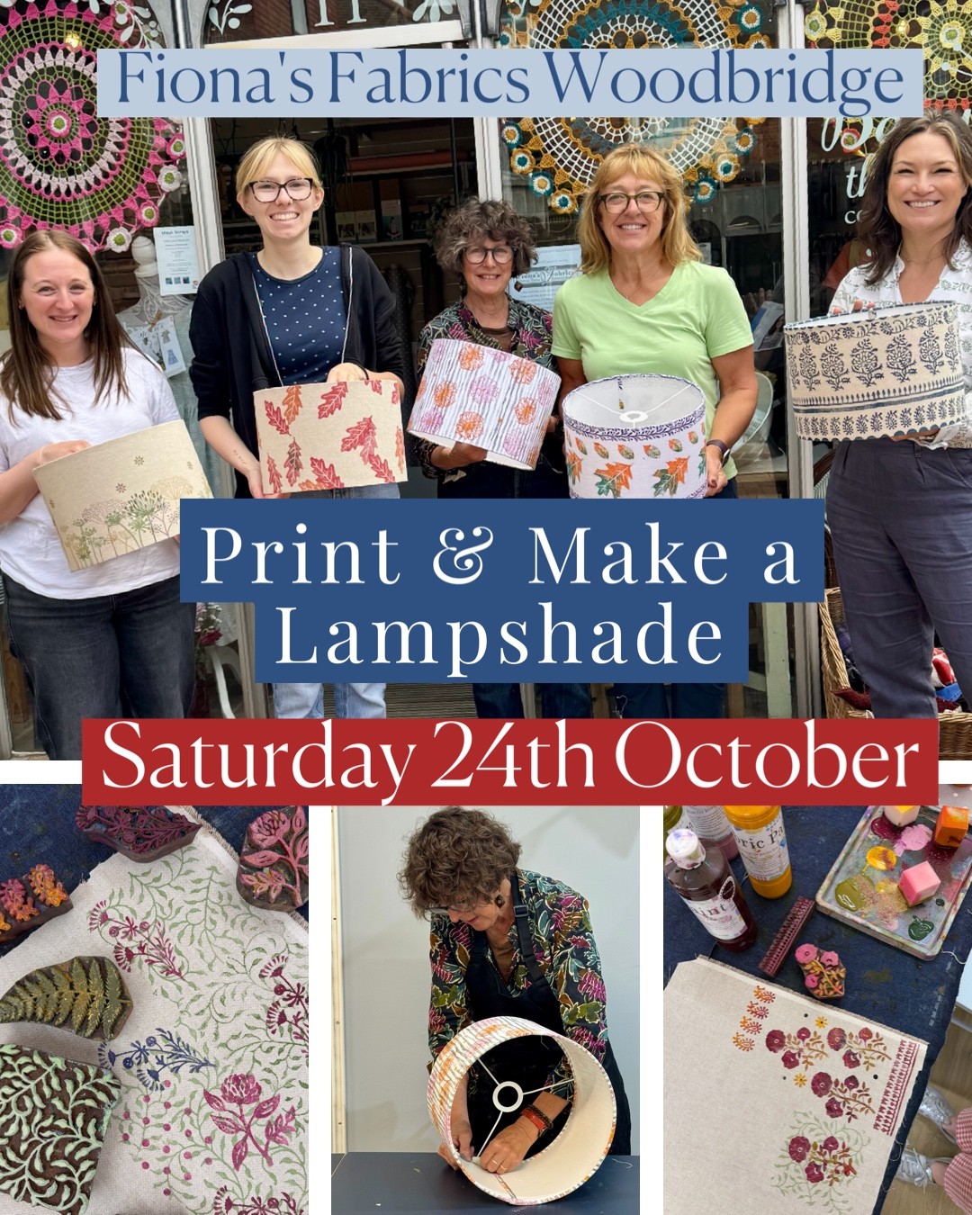 Print & Make a Lampshade Workshop – 10-13.00 Saturday 24th October, Fiona’s Fabrics Woodbridge
