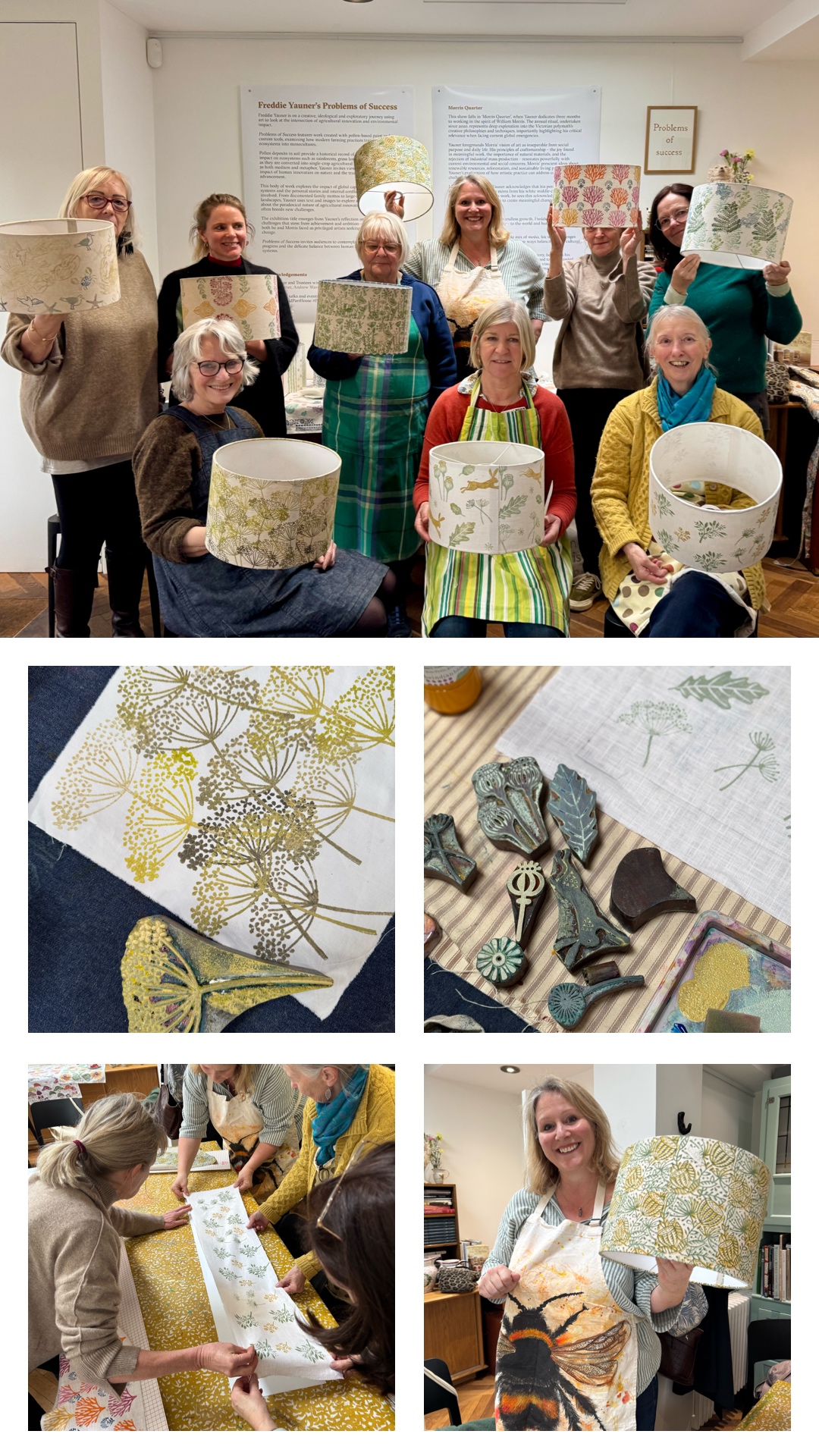 • For Lampshade Workshops: all the materials to construct your lampshade plus a choice of white linen or natural cotton to print your shade.